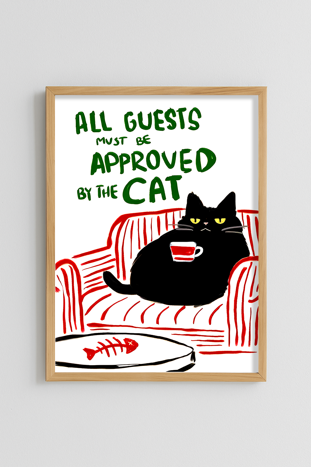 This 'All guests must be approved by the cat Poster' poster adds charm and a twist of humor to your space.